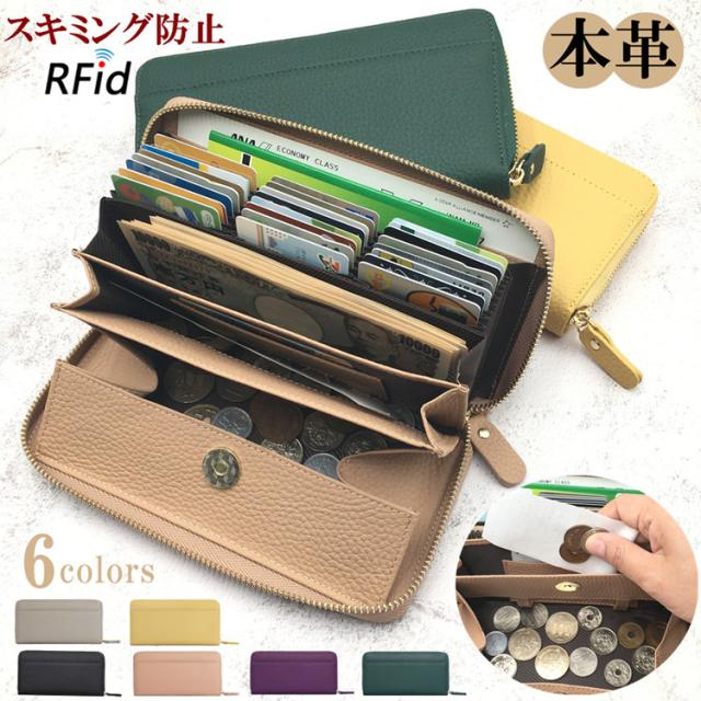 長財布 レディース 本革 大容量 ギャルソン 財布 コインスルー スキミング防止 財布 牛革 レザー ラウンドファスナー じゃばら カード収納 使いやすい 外ポケット付き シンプル ウォレット プレゼント 送料無料