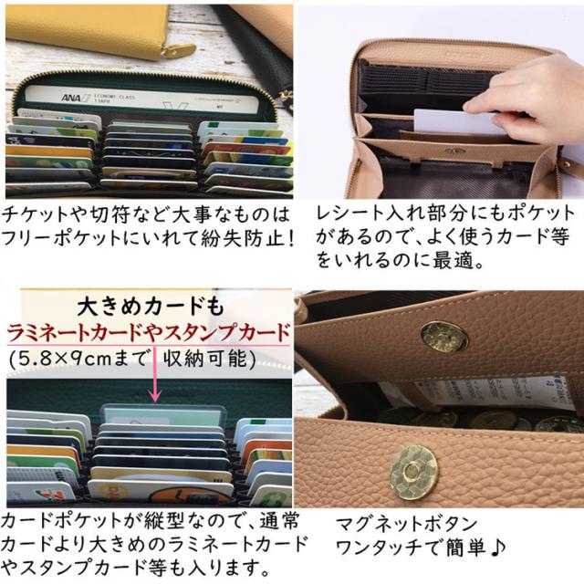 じゃばら式縦型カードポケット、大きく開くので一目で見渡せます。 必要なカードがすぐに見つかります。 ラミネートカードやスタンプカードなどの少し大きめのカードもラクラク収納!