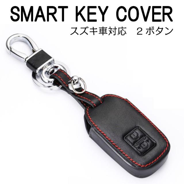 スズキ 2ボタン キーカバー レザー 革 キーケース スマートキー SUZUKI 新型 ワゴンR スイフト ジムニー ハスラー クロスビー