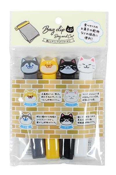 ●品名・袋とじクリップ 4P イヌ ネコ