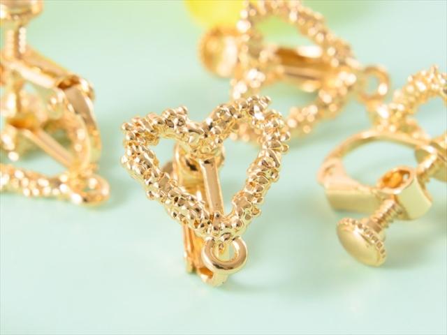 イヤリング パーツ ニッケルフリー 変退色防止 金属アレルギー対応 クランチハート ゴールド 14mm 2ペア ブライダル アクセサリーパーツ