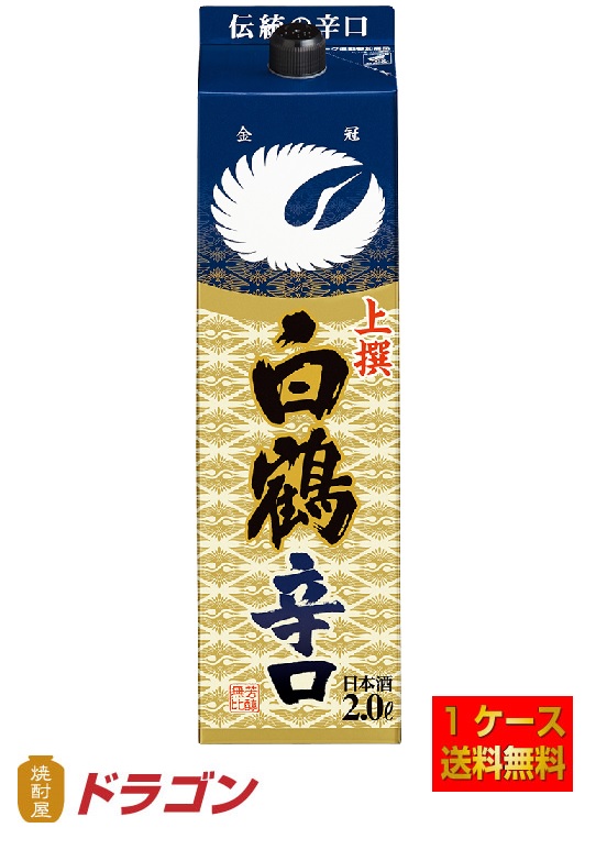 送料無料 白鶴 上撰 サケパック 辛口 2Lパック 2000ml×6本 1ケース 日本酒 清酒