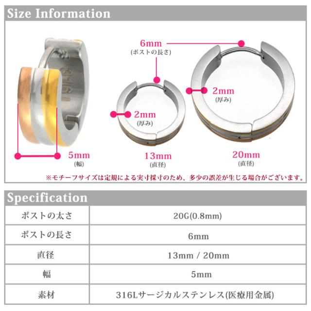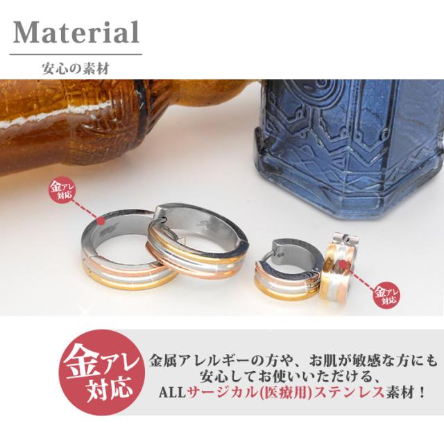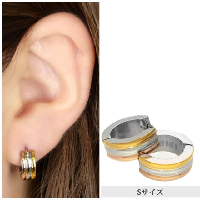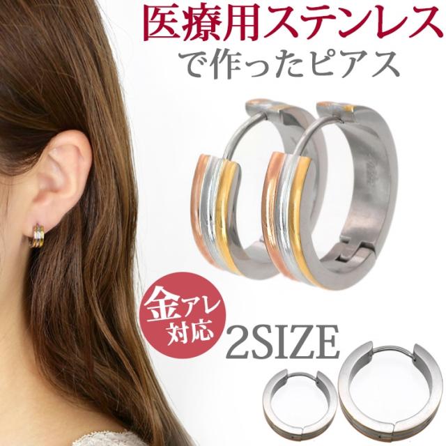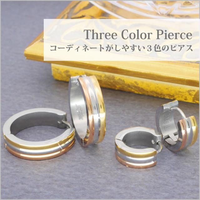 金属アレルギー対応 ステンレスピアス スリーカラーピアス 両耳用 316L サージカルステンレス