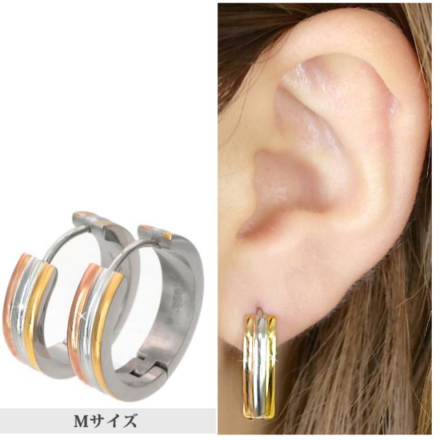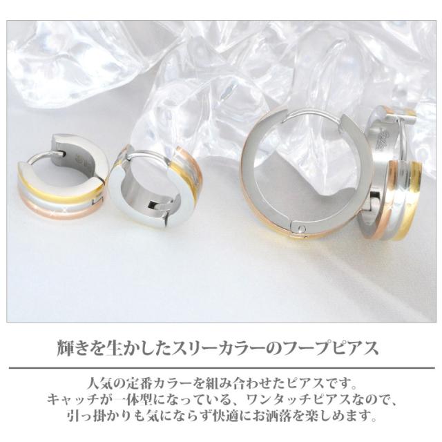 人気の3色がひとつになったお洒落なフープピアス。