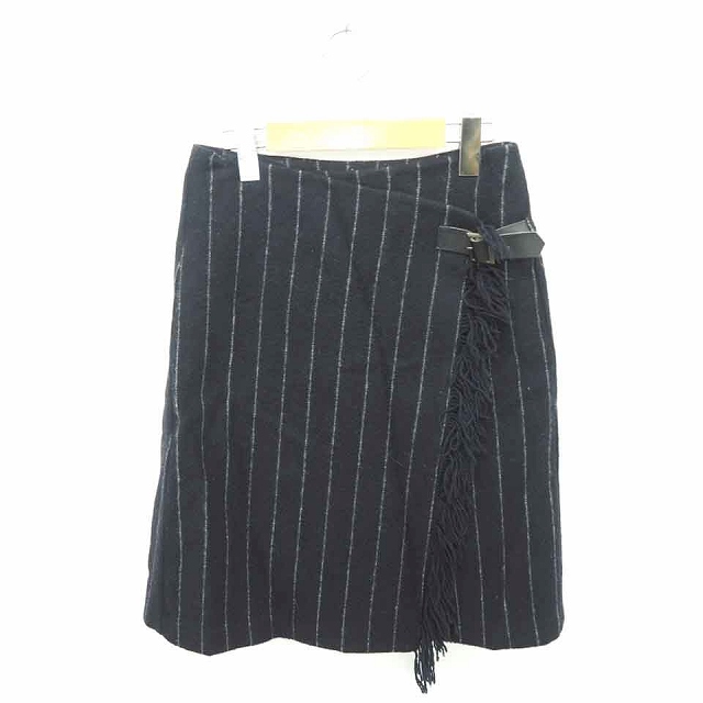 【中古】アーバンリサーチ スカート タイト 巻き ラップ ひざ丈 ストライプ フリンジ 厚手 FREE ネイビー ホワイト