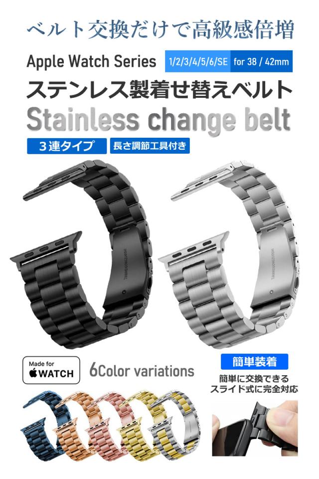 アップルウォッチ バンド apple watch用バンド Apple Watch ステンレス ベルト 交換ベルト38mm 40mm 42mm 44mm Series1 2 3 4 5 6 SEアップルウオッチ 時計ベルト 腕時計ベルト 替えベルト ウォッチバンド 調整工具付き メンズ レディース