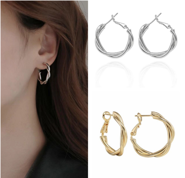 ★ 両耳用 ひねり ねじり ピアス ★ レディース ジュエリー フープピアス 耳飾り イヤリング スタッド オシャレ アクセサリー 2色 N72-1
