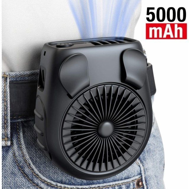 腰ベルトファン 5000mAh ジェットファン 首掛け・腰掛け ハンズフリー2wayファン 三段階風量調節 小型 USB充電式 空調服/作業服用ファン