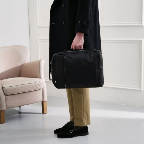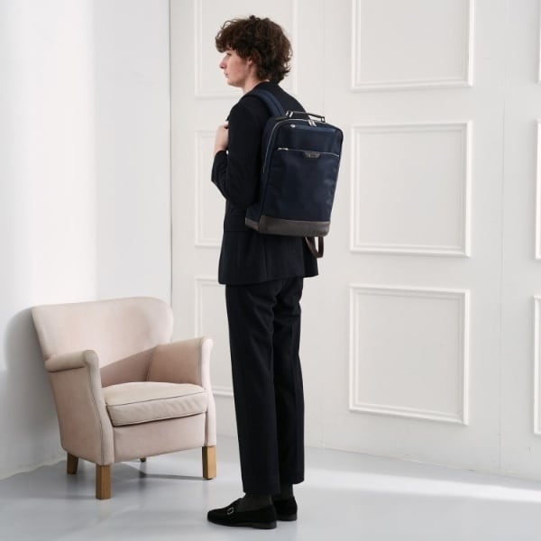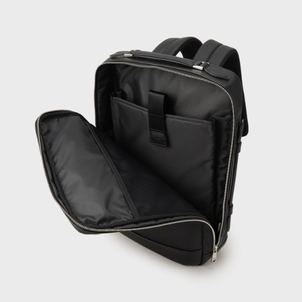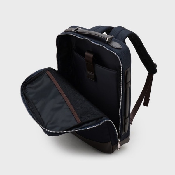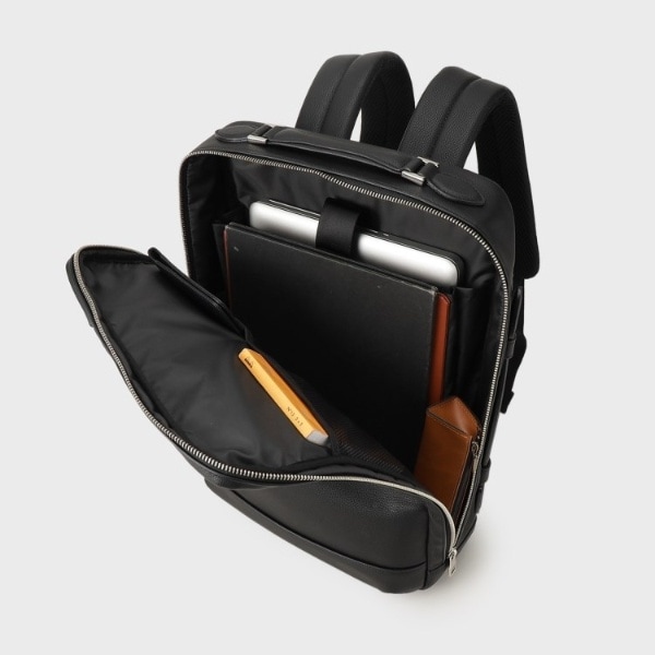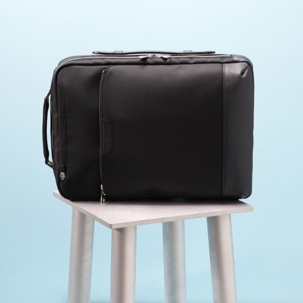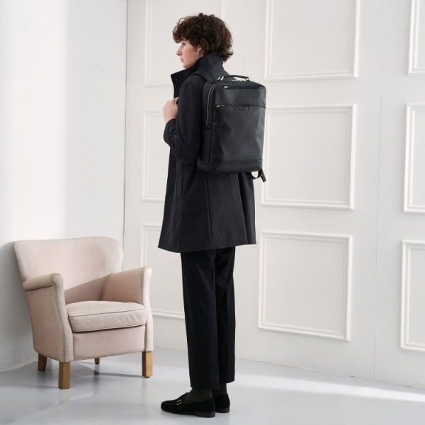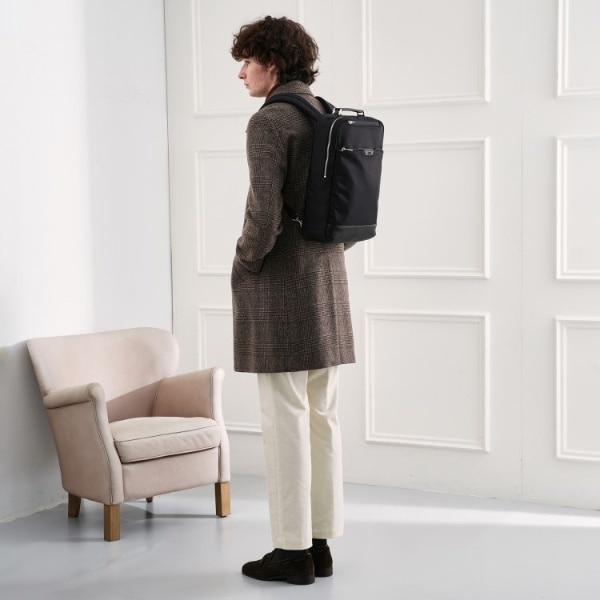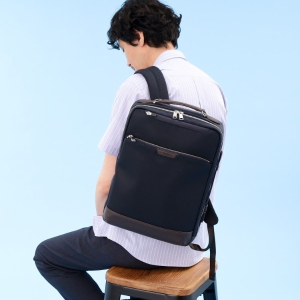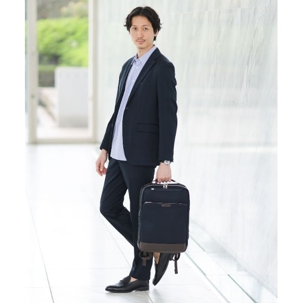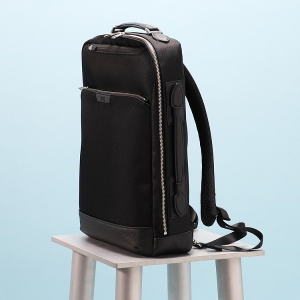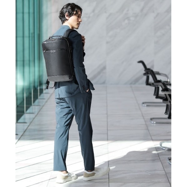 ミニマルな通勤シーンにピッタリのONOFF2WAYリュック。マチは薄いが収納と機能は◎です。