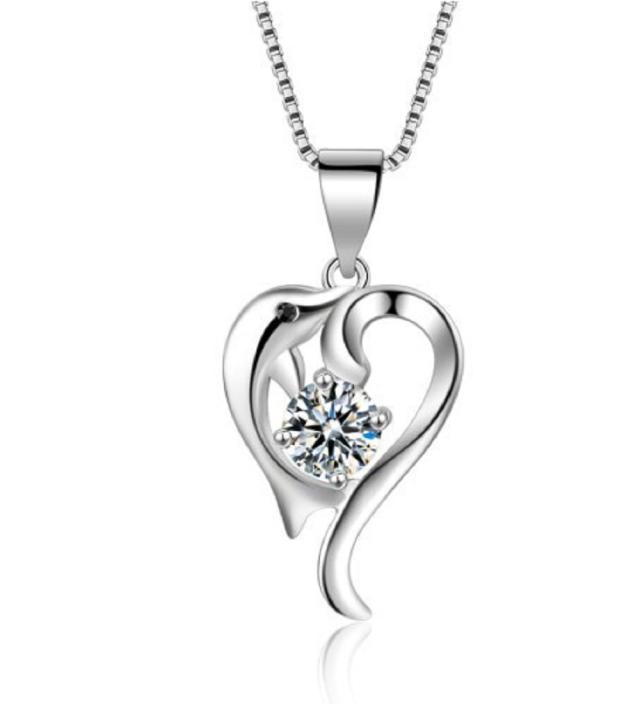 上品で清楚なホワイトゴールドの光沢は日焼けしたお肌にも美しく映え、 上質なワンランク上の大人可愛い胸元を演出します。 大人気のイルカモチーフを愛らしいハートにアレンジしたジュエリーは、 他ではなかなか見られない自慢の逸品 キュービック・ジルコニア (CZ)の透明感あふれる輝きで、気品とリッチ感もグンとUP