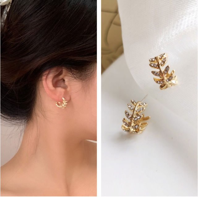 ★ 両耳用 葉っぱ ピアス ★ レディース ジュエリー パール フープピアス 耳飾り イヤリング スタッド オシャレ アクセサリー 2色 N79