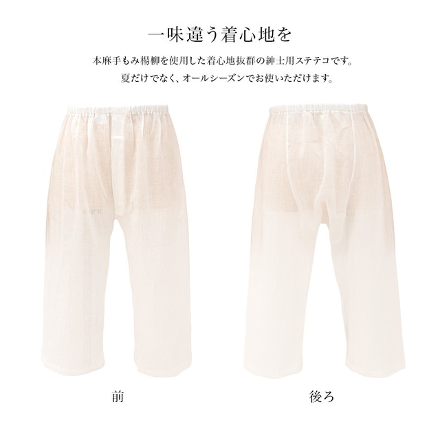 ステテコ メンズ 夏 通年 日本製 白 本麻 ジョーゼット 手もみ楊柳 吸汗 下ばき 和装下着 肌着 男性 着付け小物 和装小物 M L LL メール便 送料無料
