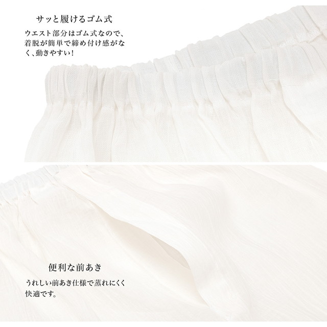 洗うほどに柔らかくソフトな肌触りの本麻のジョーゼット(手もみ楊柳)素材は、洗濯しても型くずれや縮みもなく柔らかな風合いです。