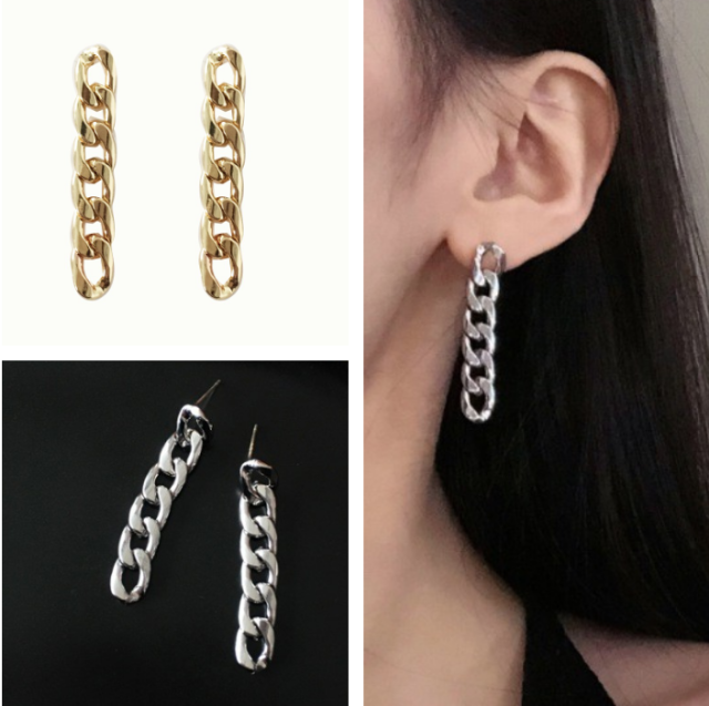 ★ 両耳用 チェーン リング ピアス ★ レディース ジュエリー フープピアス 耳飾り イヤリング スタッド オシャレ アクセサリー 2色 N86