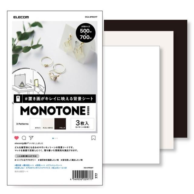 .撮影用 背景 背景シート モノトーン(ホワイト・アンティークホワイト・ブラック) 大判 50cm×70cm 3枚入 エレコム DGA-BPBGMT【送料無料】 (DGABPBGMT)