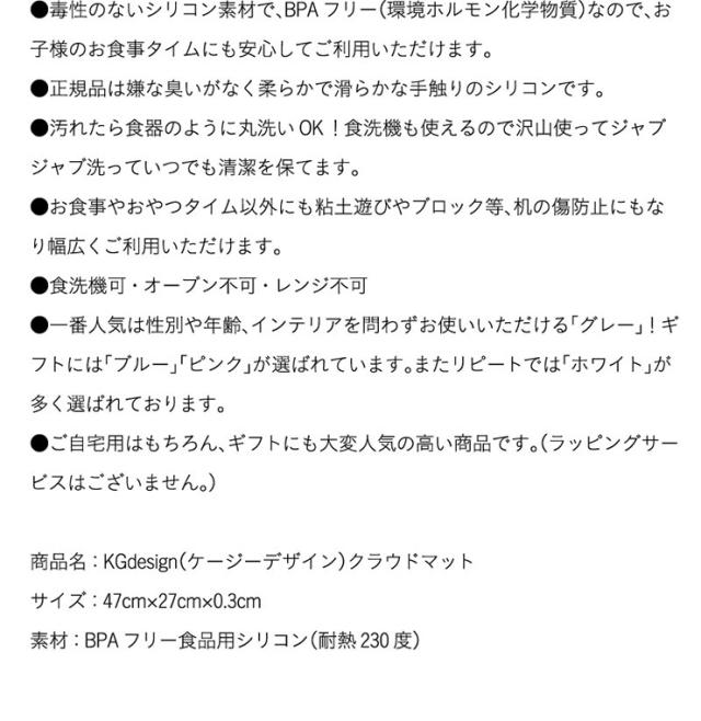 スウェーデン発[正規品/BPAフリー/国内試験済] KGdesign(ケージーデザイン) クラウドマット 9色対応 クラウドランチョンマット 雲 シリコンマット 子供 防水 北欧 おしゃれ 離乳食 離乳食グッズ 食器置き 耐熱 おしゃれ
