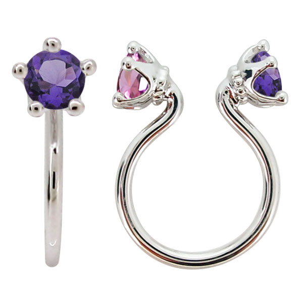 フープイヤリング プラチナ アメジスト 2月 誕生石 王冠 シンプル イヤーカフ 片耳 リバーシブル