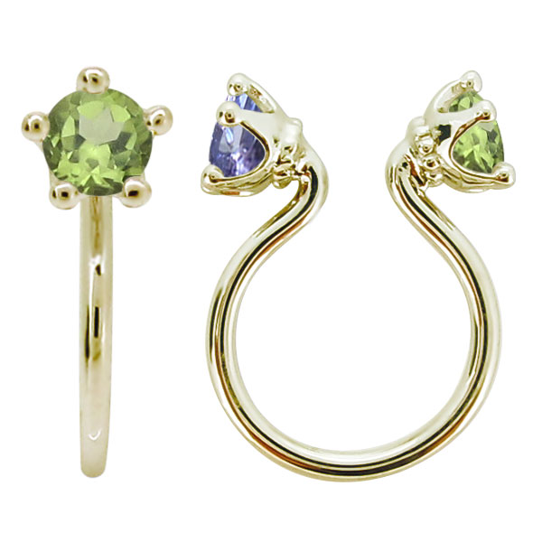 8月誕生石ペリドットを使用した18金製の、王冠・クラウンデザインのイヤーカフ(片耳)です。
