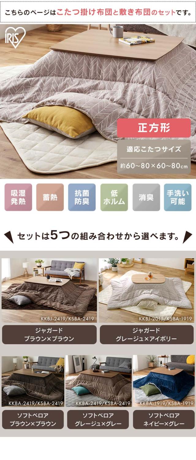 ★クーポンあり★ こたつ こたつセット 正方形 こたつ掛け布団 190×190 こたつ敷き布団 190×190 正方形 ブラウン×グレージュ×アイボリー×グレー こたつ 掛布団 敷布団 吸湿発熱 蓄熱 抗菌 防臭 低ホルム 消臭 アイリスオーヤマ [22冬]