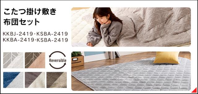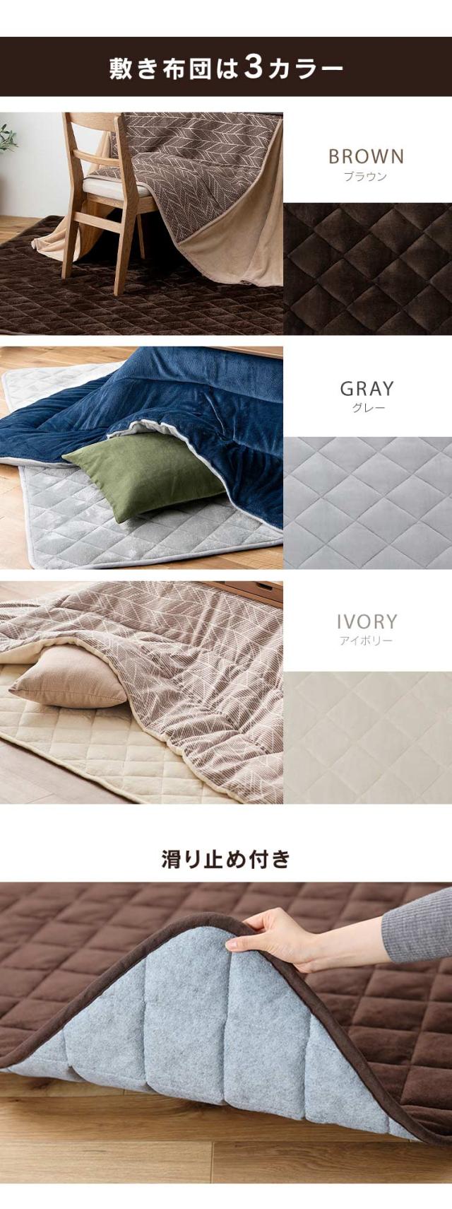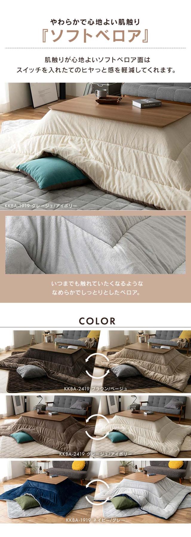 暖かさをキープするソフトベロア素材のこたつ掛布団とふかふか暖かな踏み心地のこたつ敷布団のセットです。