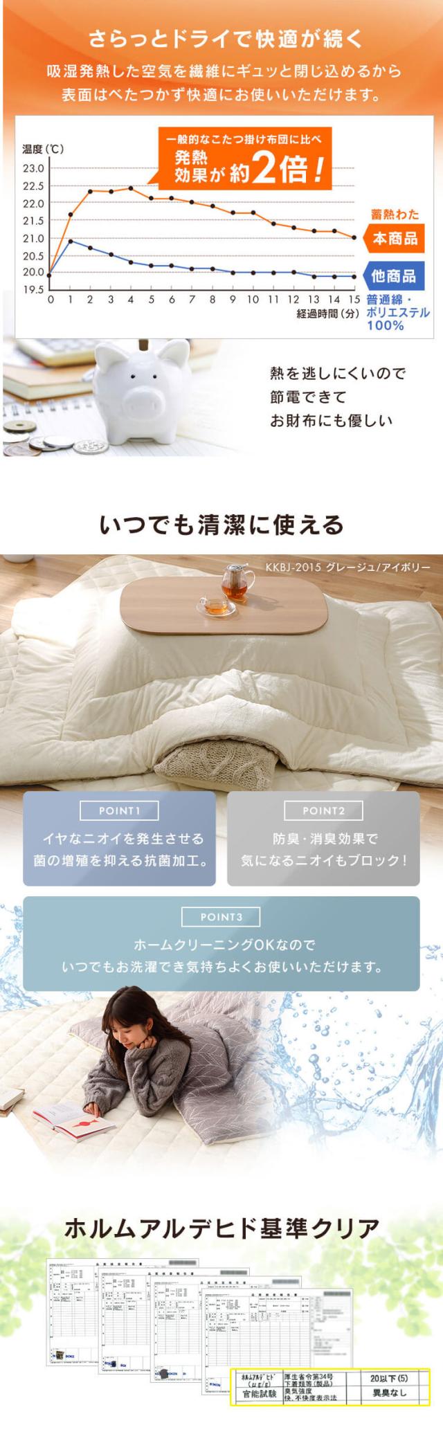 たっぷり入った蓄熱わたが暖かさを逃がしません。
