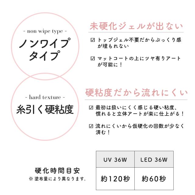 *作業中もジェルの蓋は開けたままにしないようにお願い致します。(照明や日光等で硬化する場合がございます)