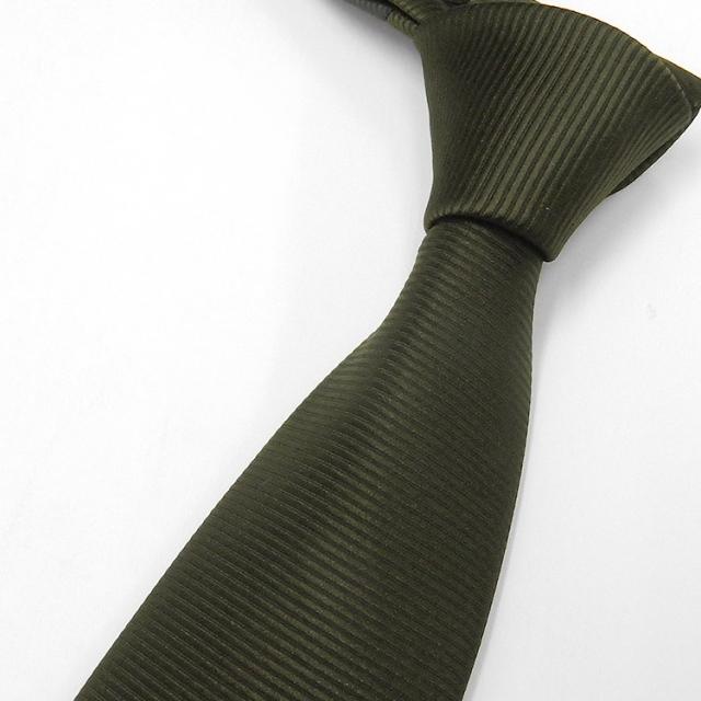 日本製 ネクタイ 甲州織 オリーブグリーン×黒/ボーダー(横綾) テトロン糸使用 洗濯機OK メール便OK BUN-BD05