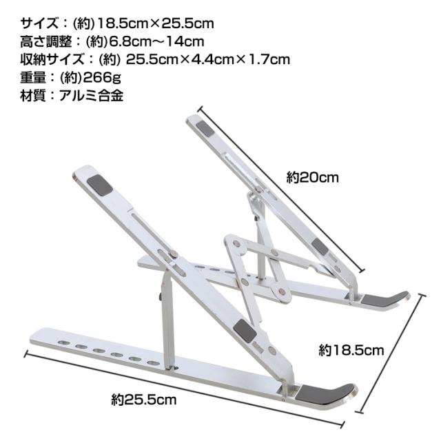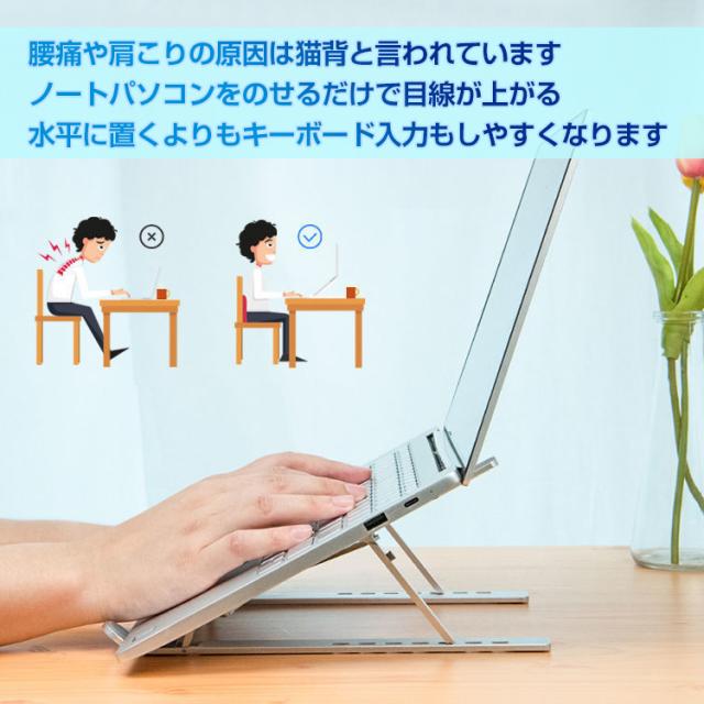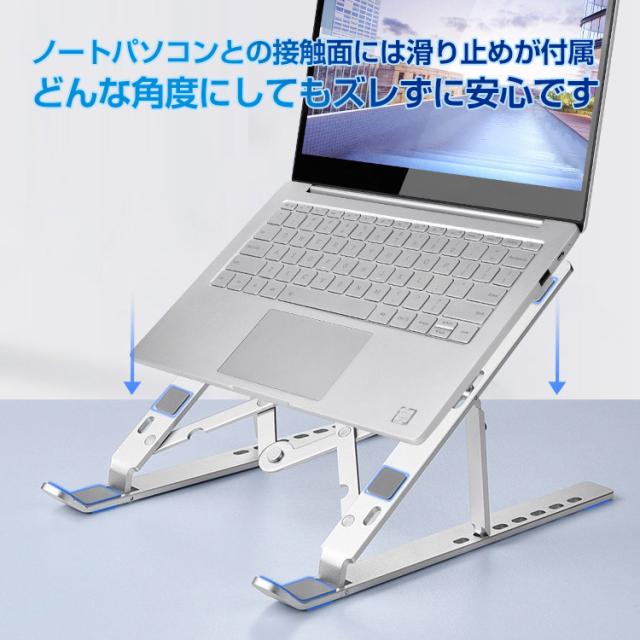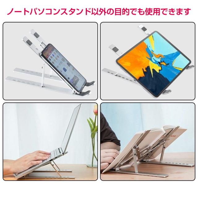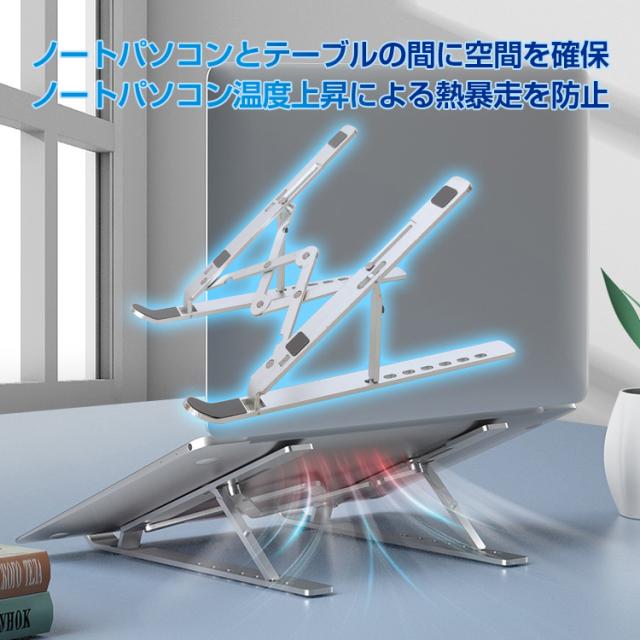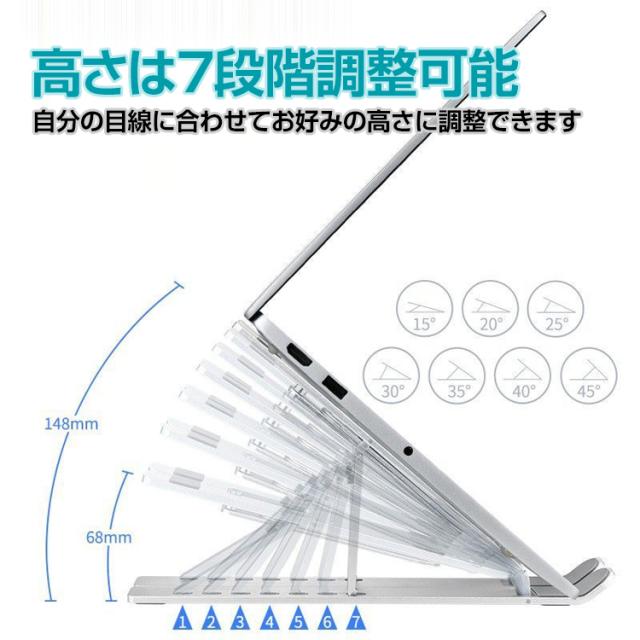 ノートパソコンスタンド ノート PC パソコン タブレット スタンド 卓上 折りたたみ 机上 台 7段階 高さ調整 姿勢 楽チン タブレット視聴 滑り止め アルミ合金 放熱 在宅 リモート ワーク テレワーク
