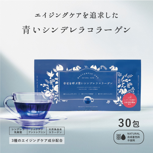 サプリ 幸せを呼ぶ青いシンデレラコラーゲン 30日分 青い青汁 バタフライピー シンデレラ乳酸菌 H61 フィッシュコラーゲン 美容 パウダー 個包装 送料無料