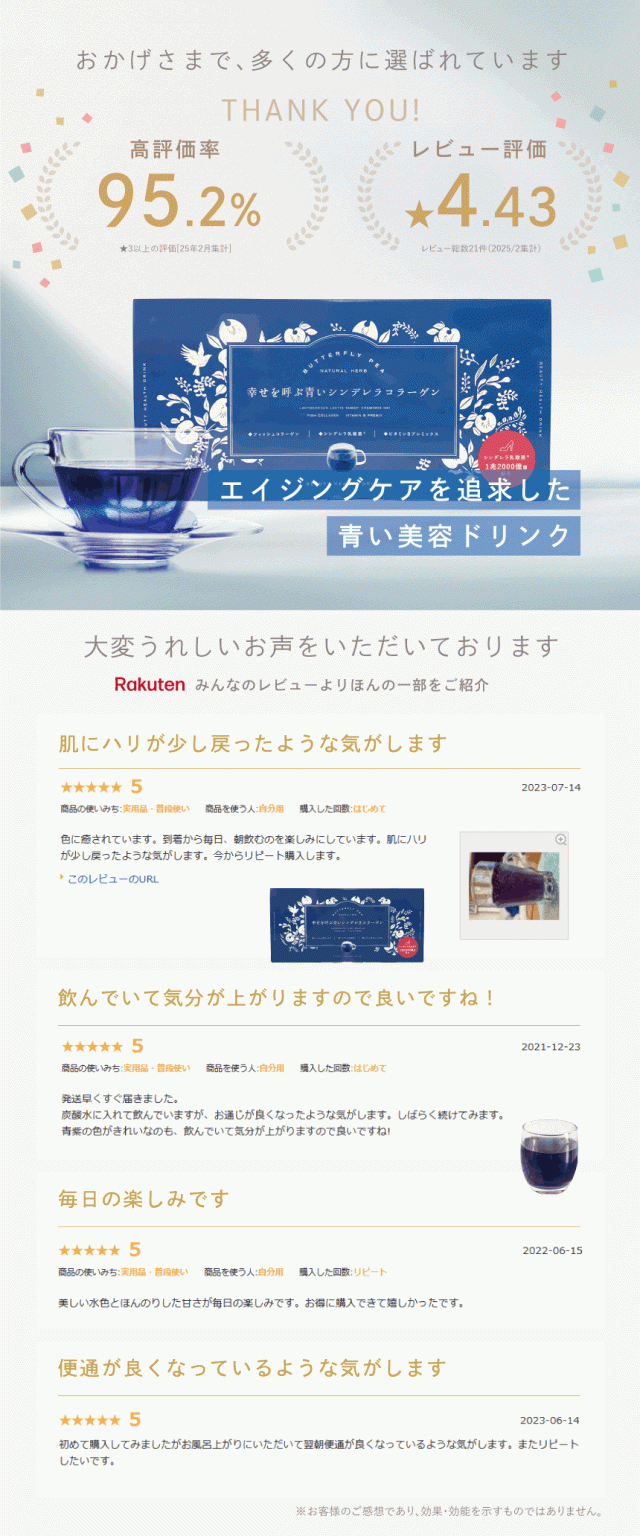 | 品名 | 幸せを呼ぶ青いシンデレラコラーゲン |