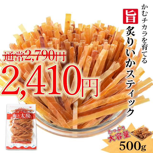 【SALE!380OFF】<旨炙りいかスティック500g> かむチカラを育てる ジャーキー 大容量 徳用 定番 駄菓子 チャック付き おつまみ 珍味 海と太陽 ポイント消化 クーポン消化 イカ するめ イカスティック シート 送料無料