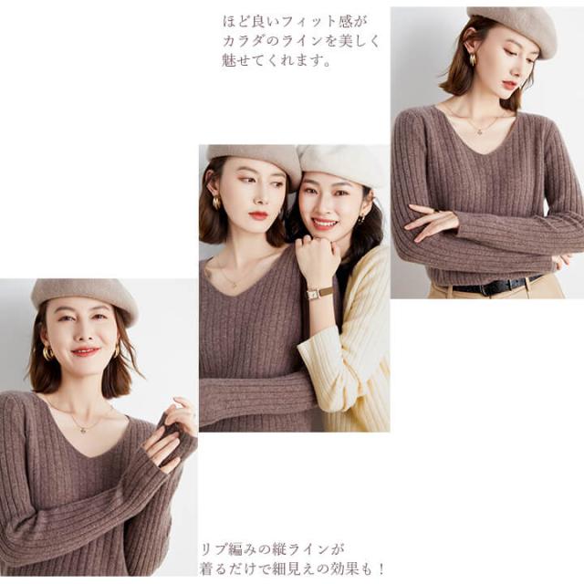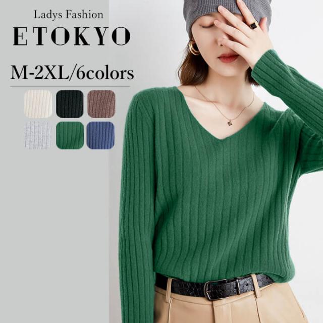レディース リブニット セーター プルオーバー トップス リブセーター ストライプ 長袖 あったか くすみカラー シンプル 大人カジュアル おしゃれ ナチュラル くすみカラー Vネック 丸首 秋 冬 大きいサイズ こなれ感 抜け感 M L XL LL 大きいサイズ
