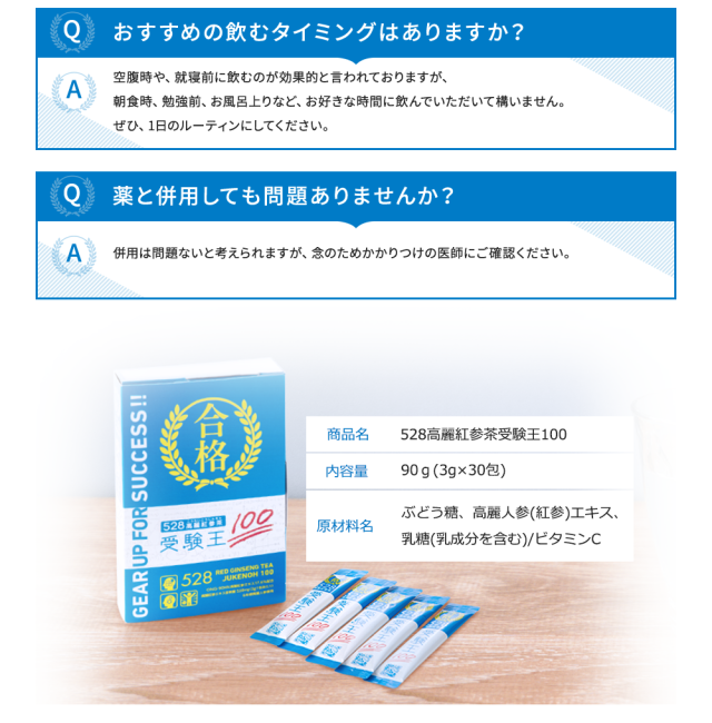 | 商品名 | 528高麗紅参茶(こうらいこうじんちゃ) 受験王100 根加工食品 |