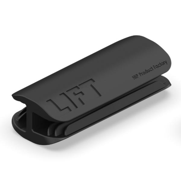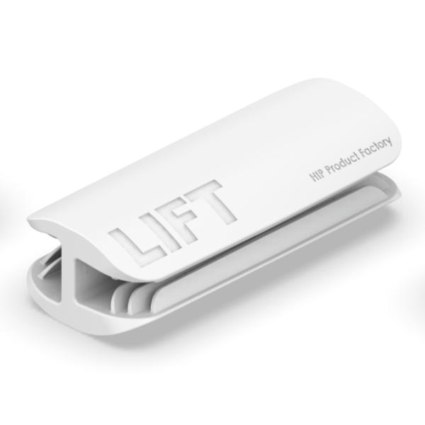 LIFTの文字がない面をPC画面の側面、もしくは上部にスライドさせるように製品をしっかりはめ込みます。この時、製品とPCに隙間がないようにしっかりと設置してください。次にLIFTの文字が書かれている側にスマートフォンをスライドさせるように設置してお使いください。
