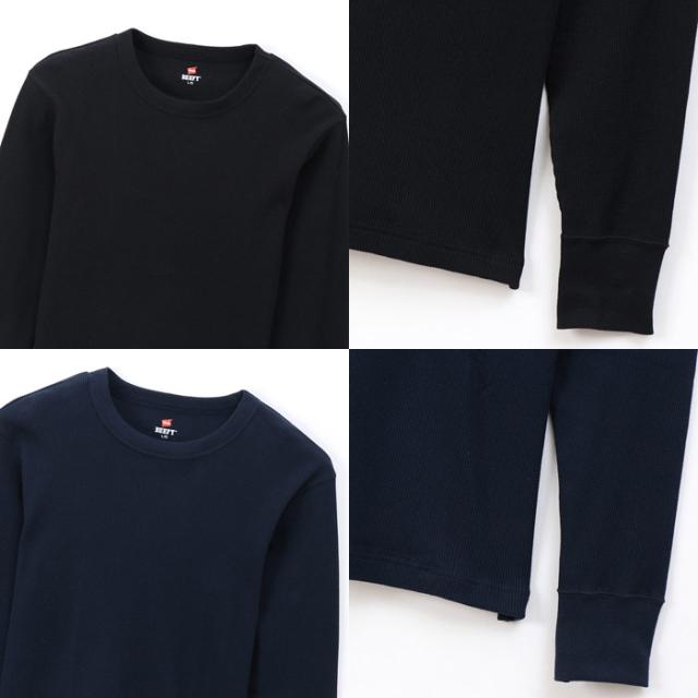 ヘインズ ビーフィー メンズ 長袖tシャツ 無地 サーマル HM4-Q103 ブランド カットソー 長袖 tシャツ シンプル 定番 ワッフル 白 黒 グレー ネイビー ロンT Hanes BEEFY-T パックTシャツ パックT 丈夫