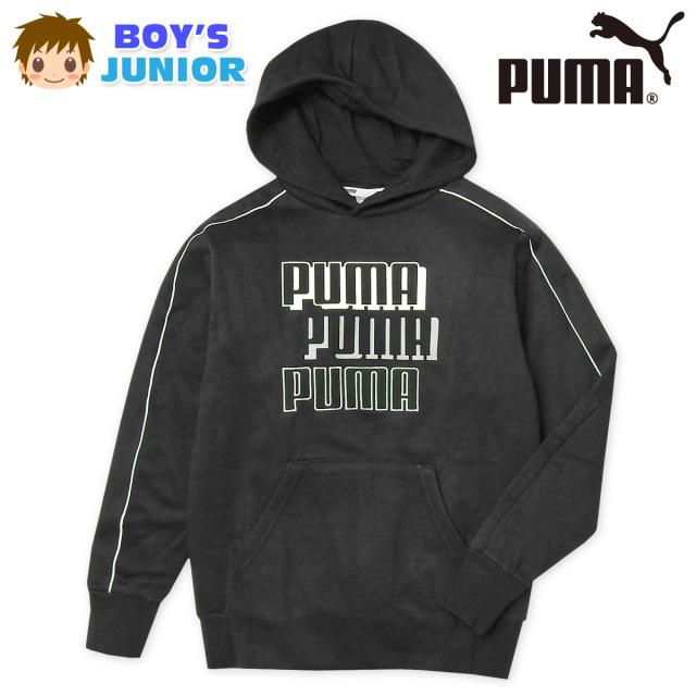 【送料無料】男児 ジュニア 裏起毛 スウェット プルパーカー PUMA/プーマ あったか素材 フーデッド 配色切替 ロゴ 子供服 男の子 140cm 150cm 160cm td-0190b-bk【メール便対応】