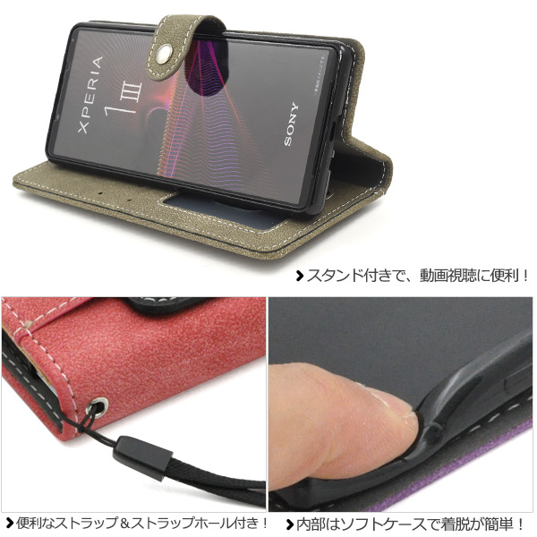 スマホケース Xperia 1 III SO-51B SOG03 A101SO 手帳型 スライドポケット スマホケース 装着簡単 磁石なし シンプル スマホカバー お洒落 オシャレ カジュアル 横開き 携帯ケース コンサバ スタイリッシュ オーソドックス ソフトレザー auスマホ ケータイケース au携帯カバー