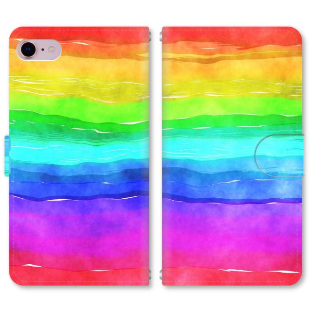スマホケース 手帳型 iPhone13 iPhoneSE2 アイフォン 8 aquos sense GooglePixel xperia galaxyなど多機種制作対応 m3034_レインボー