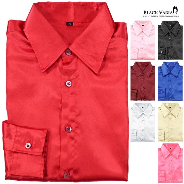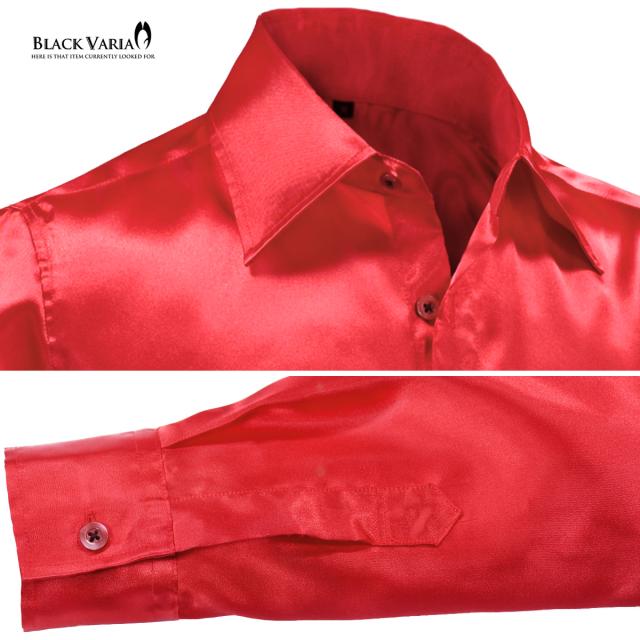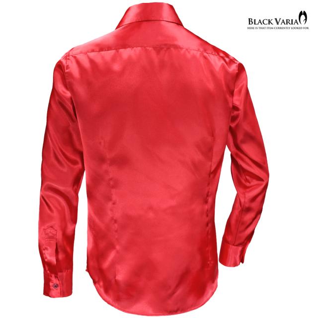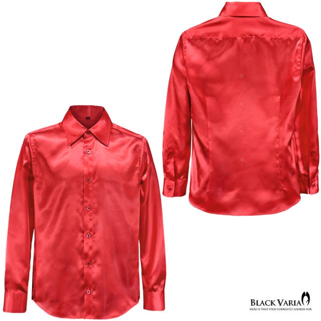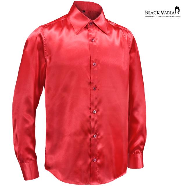 メール便可/1枚まで サテンシャツ 無地 光沢 ステージ衣装 ユニフォーム ドレスシャツ メンズ 日本製(ハイレッド赤) 141405