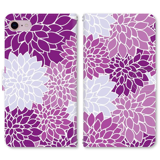 スマホケース 手帳型 iPhone13 iPhoneSE2 アイフォン 8 aquos sense GooglePixel xperia galaxyなど多機種制作対応 m3092_菊(紫)