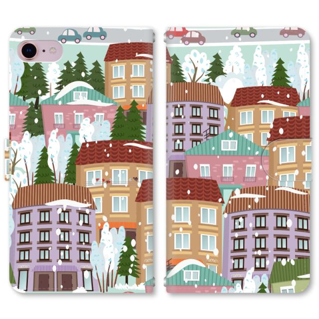 スマホケース 手帳型 iPhone13 iPhoneSE2 アイフォン 8 aquos sense GooglePixel xperia galaxyなど多機種制作対応 m3099_かわいい街(雪)