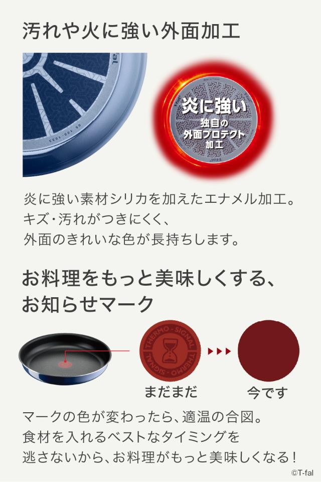ガス火用で最高ランクの耐久性を誇る「チタン・インテンスコーティング」で、使い始めのこびりつきにくさが長く続きます。