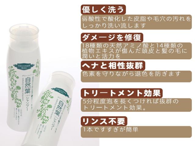 グリーンノート 自然葉シャンプー 300ml ヘナの色持ちUP アミノ酸シャンプー 無香料・弱酸性 泡トリートメント リンス不要 送料無料