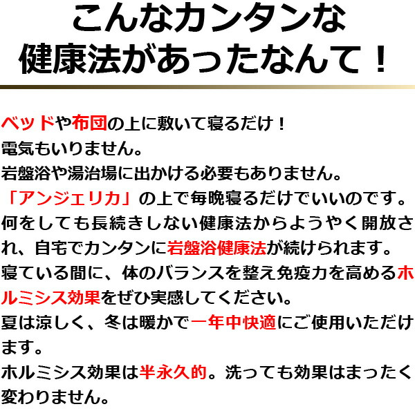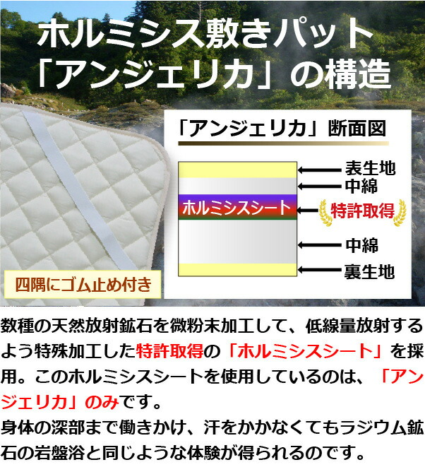 【正規代理店】ホルミシス敷きパット「アンジェリカ」「ホルミシス」「遠赤外線」「マイナスイオン」ホルミシス 敷きパッド 冷え マット 玉川温泉 布団 天然ラドン ラジウム 鉱石 北投石 ミトコンドリア 温熱 送料無料|岩盤浴 敷パッド ベッドパッド ホルミシス シーツ