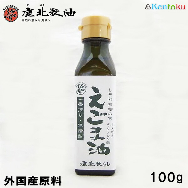 鹿北製油 えごま油(しそ油) 100g 一番搾り 無精製 ダイエット 無農薬 無添加 低温圧搾 オメガ3 αリノレン酸 60% サプリ コレステロール EPA DHA カホク 6本以上送料無料|エゴマ油 外国産 エゴマオイル 健康オイル 健康食品 美容