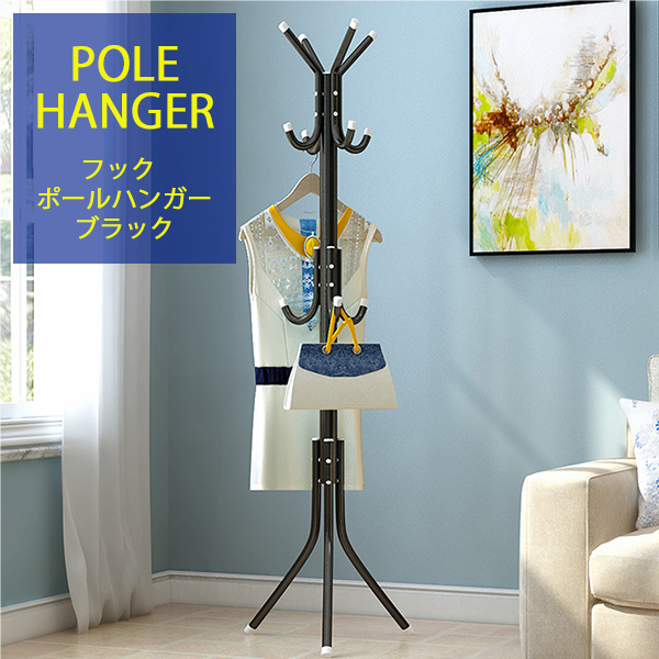 ポールハンガー コートハンガー パイプハンガー ポールスタンド おしゃれ 北欧 衣類収納 玄関収納 帽子 バッグ 衣類 ブラック