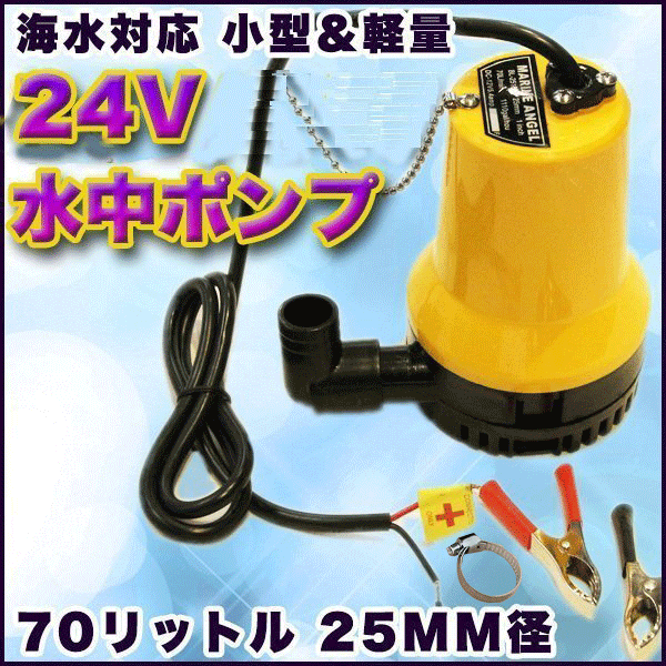 ビルジポンプ 24V 電動 水中ポンプ 海水 対応 小型 軽量 70リットル 25mm 径 給排水 耐海水性 ボート 建設機械 農業 排水 送水