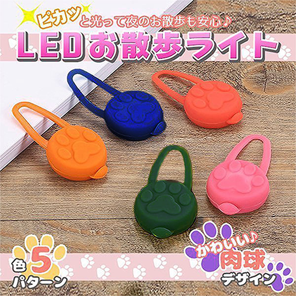 LED お散歩 ライト 肉球 シリコン 犬 猫 ペット 電池式 光る セーフティ 事故 防止 首輪 バッグ 自転車 ランニング 安心 点灯 点滅 ブルー