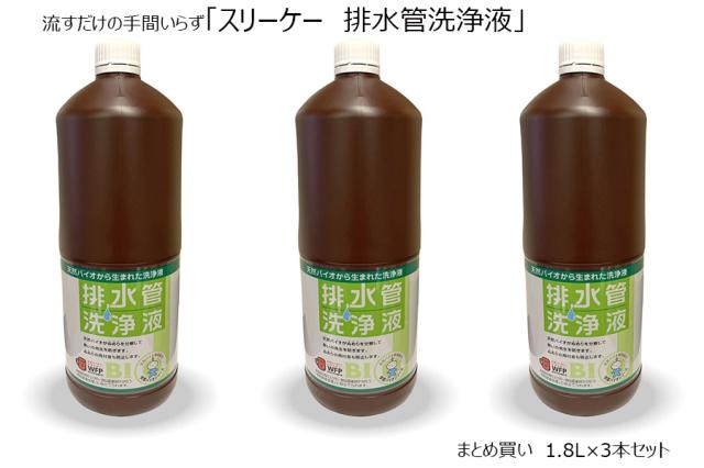 【送料無料】スリーケー 排水管 洗浄 天然バイオ 何処の排水口からでもOK 流すだけで汚れ一掃「排水口洗浄液 1.8L 3本組」