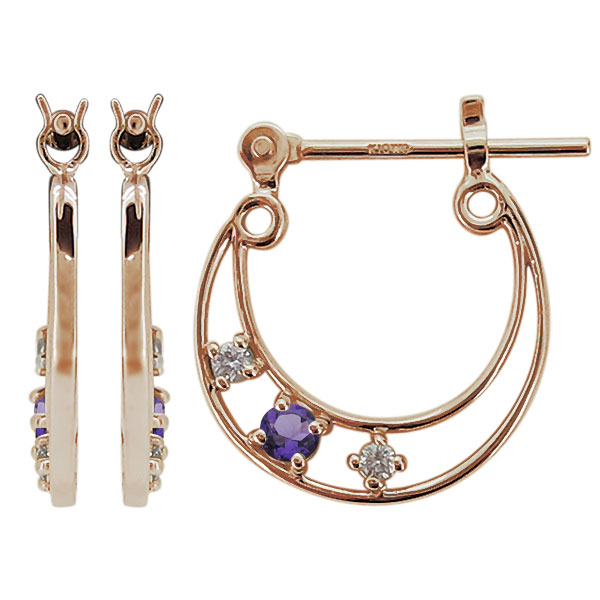 フープピアス レディース 月 ムーン アメジスト 10金 ループ クロッシング